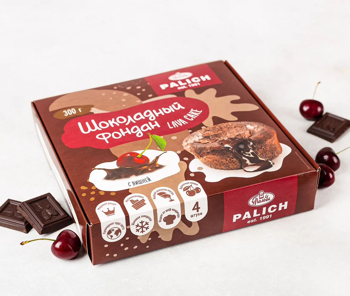 Шедевр французского кондитерского искусства - шоколадное блажество с хрустящей корочкой и жидким шоколадным центром. Идеально приготовить фондан может только профессиональный кондитер, и - Вы! Кондитеры У Палыча приготовили оригинальный фондан с вишней, который нужно только разогреть. И можно наслаждаться густым шоколадным вкусом нежного бисквита с премиальным эквадорским какао и жидким темным шоколадом из отборных какао-продуктов со сладкой сербской вишней. Рекомендуется подавать горячим, идеально с шариком ванильного мороженого.