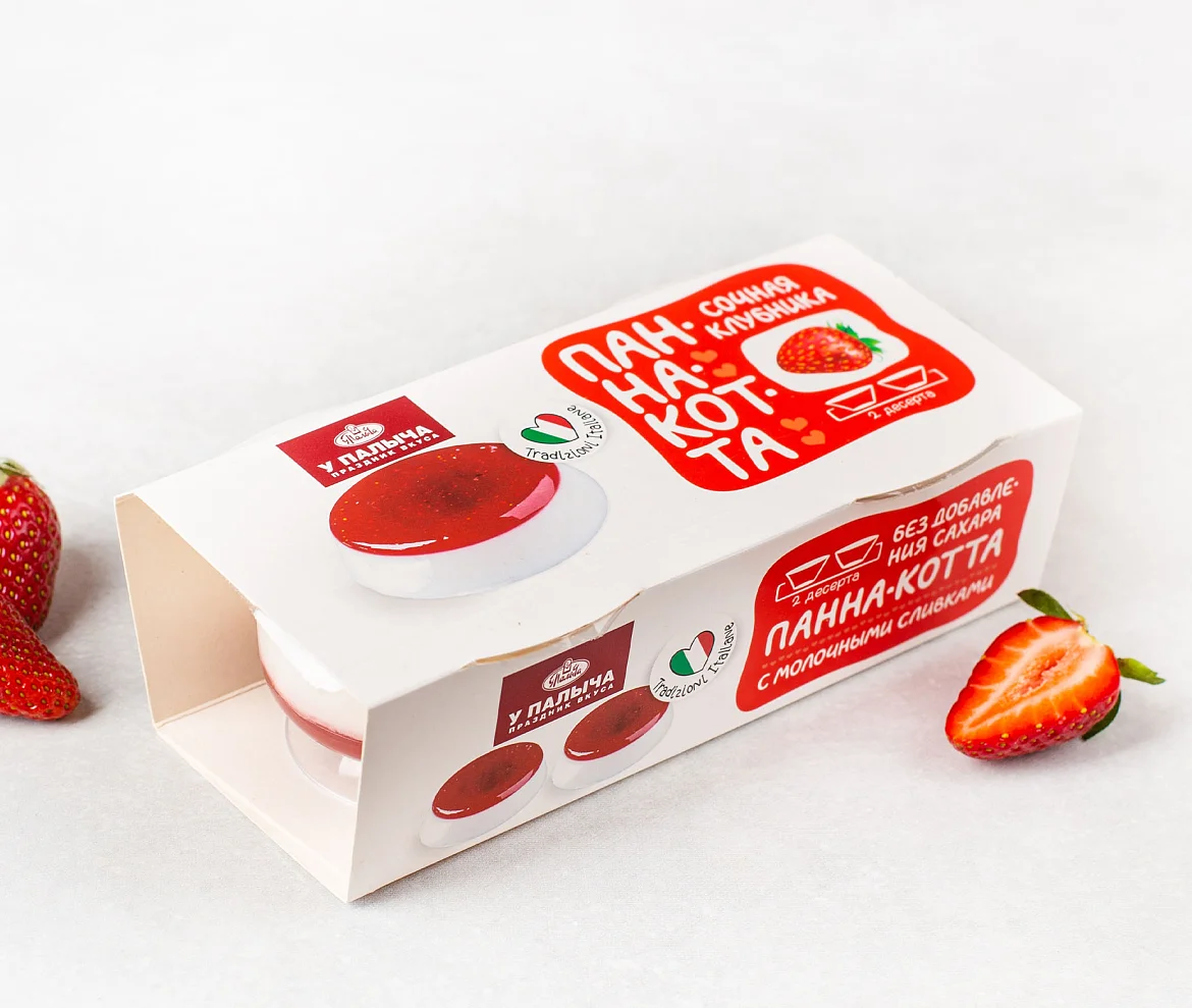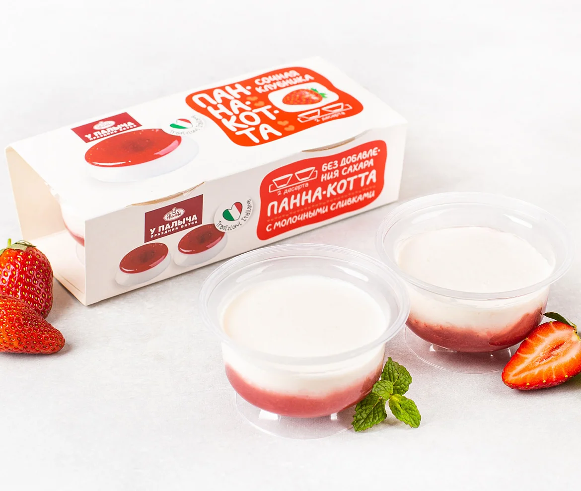 Шедевр кондитерского искусства по-итальянски — чудесная Панна-котта! Великолепный традиционный десерт из настоящих густых сливок с начинкой из спелой ароматной клубники и без добавления сахара. Потрясающее сочетание сливочной нежности и ягодной яркости. Просто объедение и сама элегантность, упакованная в изящные креманки. В комплекте 2 порции. Удобный и очень вкусный итальянский десерт с пониженным содержанием калорий и чистым натуральным составом без Е-компонентов. Насладитесь средиземноморской роскошью с коллекцией знаменитых лакомств из Италии!