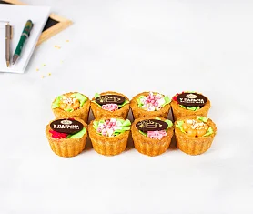 Масло сливочное (20%) (сливки пастеризованные), яйцо куриное пищевое (19%), вода очищенная, сахар, мука рисовая, молоко питьевое (8%), шоколад белый (7%) (сахар, масло какао, молоко цельное сухое, сыворотка молочная сухая, эмульгатор соевый лецитин, ароматизатор экстракт ванили натуральный), масло кокосовое рафинированное дезодорированное, мороженое пломбир (молоко питьевое, сливки питьевые с массовой долей жира 33%, сахар, масло сливочное, сухое обезжиренное молоко, декстроза, инулин, сухой глюкозный сироп, стабилизаторы: моно- и диглицериды жирных кислот, камедь рожкового дерева, гуаровая камедь, каррагинан; сухая молочная сыворотка, мальтодекстрин, ароматизатор), соль, глюкоза, порошок йогуртовый (молоко сухое обезжиренное, закваска), регулятор кислотности лимонная кислота, ароматизатор экстракт ванили натуральный, глюкоза ферментированная. Произведено на предприятии, на котором также выпускаются продукты, содержащие арахис, кунжут, орехи.