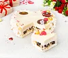 Сахар, масло сливочное (сливки пастеризованные), яйцо куриное пищевое, вода очищенная, слива сушеная (чернослив), мороженое сливочное (молоко питьевое, сливки питьевые с массовой долей жира 33%, сахар, масло сливочное, сухое обезжиренное молоко, декстроза, инулин, сухой глюкозный сироп, стабилизаторы: моно- и диглицериды жирных кислот, камедь рожкового дерева, гуаровая камедь, каррагинан; сухая молочная сыворотка, мальтодекстрин, ароматизатор), ядра орехов фундука, мука рисовая, молоко питьевое, ядра миндаля, патока, шоколад темный (какао тёртое, сахар, масло какао, эмульгатор соевый лецитин, ароматизатор ванилин), шоколад белый (сахар, масло какао, молоко цельное сухое, сыворотка молочная сухая, эмульгатор соевый лецитин, ароматизатор ванилин), желирующие агенты: желатин, агар, глюкоза ферментированная, рисовые шарики (крупа кукурузная, мука рисовая, сахар, вода, стабилизатор карбонат кальция, соль), белок яичный сухой, клубника с/м, ароматизатор, красители: бета-каротин, медные комплексы хлорофиллов, куркумин, оксиды и гидроксиды железа.