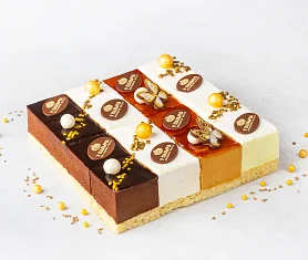 Нежное воплощение летнего утра в каждом кусочке. Сердце торта — воздушный мусс, сотканный из шелковистого творожного сыра, мягких сливок и легкой сметаны, с добавлением спелой подмосковной клубники, ее сочная сладость наполняет десерт живой свежестью. Основой служит тонкий, едва уловимый бисквит, пропитанный ненавязчивой сладостью, идеально подчеркивающий главную звезду десерта. А сверху — изящный декор из хрустящего воздушного риса, добавляющий легкости и игривости, словно утренний ветерок над клубничными полями.
