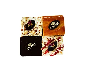 Сахар, масло сливочное (сливки пастеризованные), мука пшеничная в/с, яйцо куриное пищевое, клубника с/м, вода очищенная, шоколад белый (сахар, масло какао, молоко цельное сухое, сыворотка молочная сухая, эмульгатор соевый лецитин, ароматизатор экстракт ванили натуральный), кокосовые сливки (вода очищенная, масло кокосовое рафинированное дезодорированное, сахар, желирующий агент каррагинан), сухое обезжиренное молоко, крахмал кукурузный, молоко питьевое, масло подсолнечное рафинированное дезодорированное, соль, шоколад темный (какао тёртое, сахар, масло какао, эмульгатор соевый лецитин, ароматизатор экстракт ванили натуральный), патока, глюкоза ферментированная, желирующие агенты: желатин, агар; куркума молотая, регулятор кислотности лимонная кислота, крупа кукурузная, ароматизаторы, мука рисовая, красители: кармин, куркумин, бета-каротин, медные комплексы хлорофиллов, оксид железа; стабилизатор гуммиарабик. Произведено на предприятии, на котором также выпускаются продукты, содержащие орехи, арахис, кунжут.