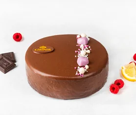 Нежные песочно-сдобные коржи на сметане и два слоя воздушного безе, сливочный крем с вареным сгущенным молоком, кофе и дробленным жареным арахисом. Поверхность торта покрыта белоснежным сливочным кремом, боковая поверхность торта обсыпана крошкой воздушного безе. Торт украшен жемчугом из воздушного риса, цветами и листочками из фруктового мармелада.