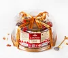 Сахар, яйцо куриное пищевое, масло сливочное (сливки пастеризованные), патока, вода очищенная, мука пшеничная в/с, молоко питьевое, ядра арахиса, виноград сушеный (изюм), мак пищевой, молоко цельное сгущенное с сахаром (молоко нормализованное, сахар (сахароза, лактоза)), шоколад темный (какао тёртое, сахар, масло какао, эмульгатор соевый лецитин, ароматизатор экстракт ванили натуральный), какао-порошок, ликёр (вода питьевая исправленная, сахарный сироп, спирт этиловый ректификованный из пищевого сырья «Люкс», настои: миндаля, полыни, пажитника; ароматизаторы), сметана (сливки, закваска), коньяк (дистилляты коньячные, выдержанные в контакте с древесиной дуба не менее трех лет, вода питьевая, сахарный сироп, краситель сахарный колер I простой), кокосовая стружка, желирующие агенты: желатин, агар; масло какао, глюкоза ферментированная, сок малиновый, регулятор кислотности лимонная кислота, ароматизаторы, разрыхлитель сода пищевая (гидрокарбонат натрия), красители: кармины, бета-каротин, медные комплексы хлорофиллов, оксиды железа.