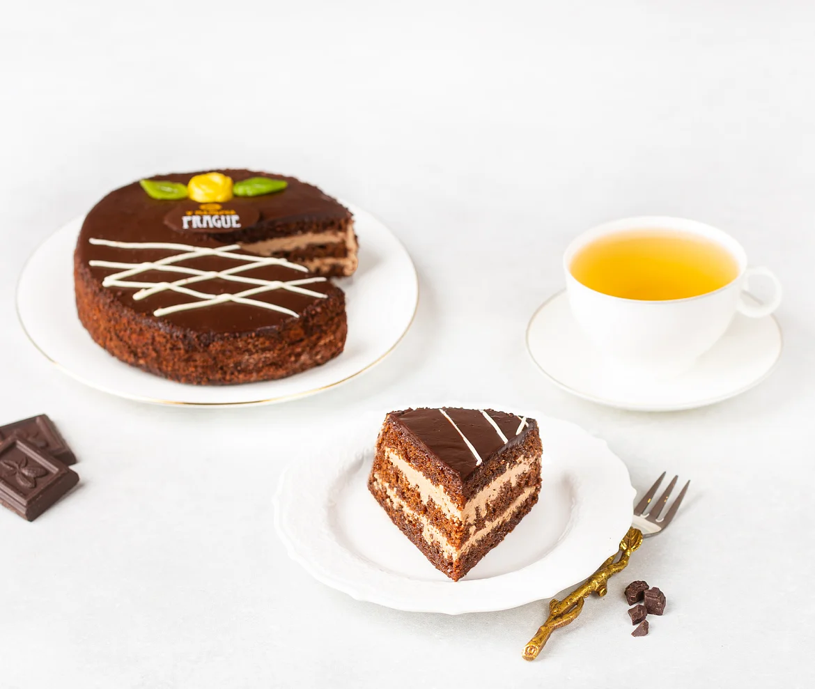 Необыкновенный торт, выпеченный со сметаной и натуральным сгущенным молоком, отборным сливочным маслом и натуральным шоколадом. Три слоя шоколадного бисквита, взбитый нежный сливочно-шоколадный крем и темный шоколад - истинное шоколадное наслаждение! Прага от Палыча нежная и ароматная, благодаря ликёру в пропитке коржей, раскрывающему густой шоколадный вкус эквадорского какао.