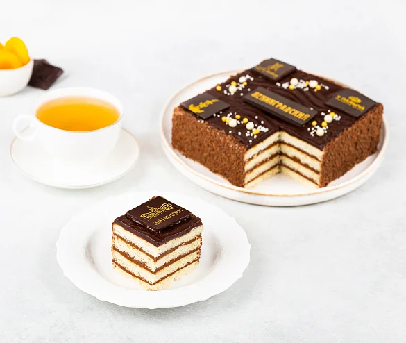 Легендарный торт в безупречном исполнении от Палыча. Вкуснейший сливочно-шоколадный крем с натуральным сливочным маслом и вареным сгущенным молоком, рассыпчатые песочные коржи и шоколадная помадка с вареной сгущенкой. Натуральный абрикосовый джем для свежего фруктового акцента на верхнем корже. Теперь у классического торта актуальный современный декор. Торт украшен табличками с узнаваемыми символами города из лучшего темного шоколада без заменителей какао-продуктов и шоколадной табличкой с названием торта.