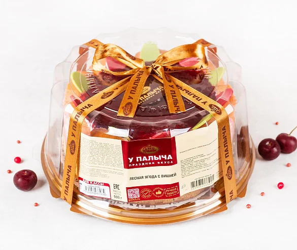 Сахар, крем на растительном масле (вода очищенная, масло кокосовое рафинированное дезодорированное, сахар, эмульгаторы: эфиры глицерина, молочной, диацетилвинной и жирных кислот, моно- и диглицериды жирных кислот, целлюлоза микрокристаллическая, соевый лецитин; агенты влагоудерживающие: сорбит, глицерин; молочный белок, стабилизатор карбоксиметилцеллюлоза натриевая соль, соль), яйцо куриное пищевое, вода очищенная, вишня с/м, мука пшеничная в/с, патока, крахмал кукурузный, глюкоза, сыворотка молочная сухая, ликёр (вода питьевая исправленная, сахарный сироп, спирт этиловый ректификованный из пищевого сырья «Люкс», настои: миндаля, полыни, пажитника; ароматизаторы, краситель Е150а), крахмал картофельный, крахмал пшеничный, ароматизаторы, молоко питьевое, желирующие агенты: желатин, агар; шоколад темный (какао тёртое, сахар, масло какао, эмульгатор соевый лецитин, ароматизатор экстракт ванили натуральный), сок вишневый, глюкоза ферментированная, соль, клубника с/м, разрыхлитель сода пищевая (гидрокарбонат натрия), регулятор кислотности лимонная кислота, загуститель ксантановая камедь, красители: куркумин, медные комплексы хлорофиллов, оксиды железа. Произведено на предприятии, на котором также выпускаются продукты, содержащие арахис, кунжут. ПРИ ПРОИЗВОДСТВЕ ИСПОЛЬЗУЮТСЯ СВЕЖЕМОРОЖЕНЫЕ ЯГОДЫ ВИШНИ, КОТОРЫЕ ПРОШЛИ ТЩАТЕЛЬНУЮ ОБРАБОТКУ, ОДНАКО, В РЕДКИХ СЛУЧАЯХ НЕ ИСКЛЮЧЕНО ПОПАДАНИЕ КОСТОЧЕК И (ИЛИ) ИХ ФРАГМЕНТОВ. Сок ягод может окрашивать бисквит в сине-фиолетовый цвет.