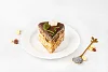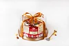 Изумительный торт из трех видов белого бисквита – с маком, с арахисом и изюмом. Бисквит пропитан сахарным сиропом с добавлением ликера, каждый слой промазан сливочным кремом. Торт порционный, боковые стороны украшены шоколадной крошкой, поверхность залита шоколадной помадкой и украшена ягодками из фруктового мармелада и листиками из темного шоколада.