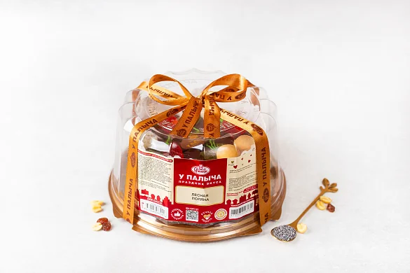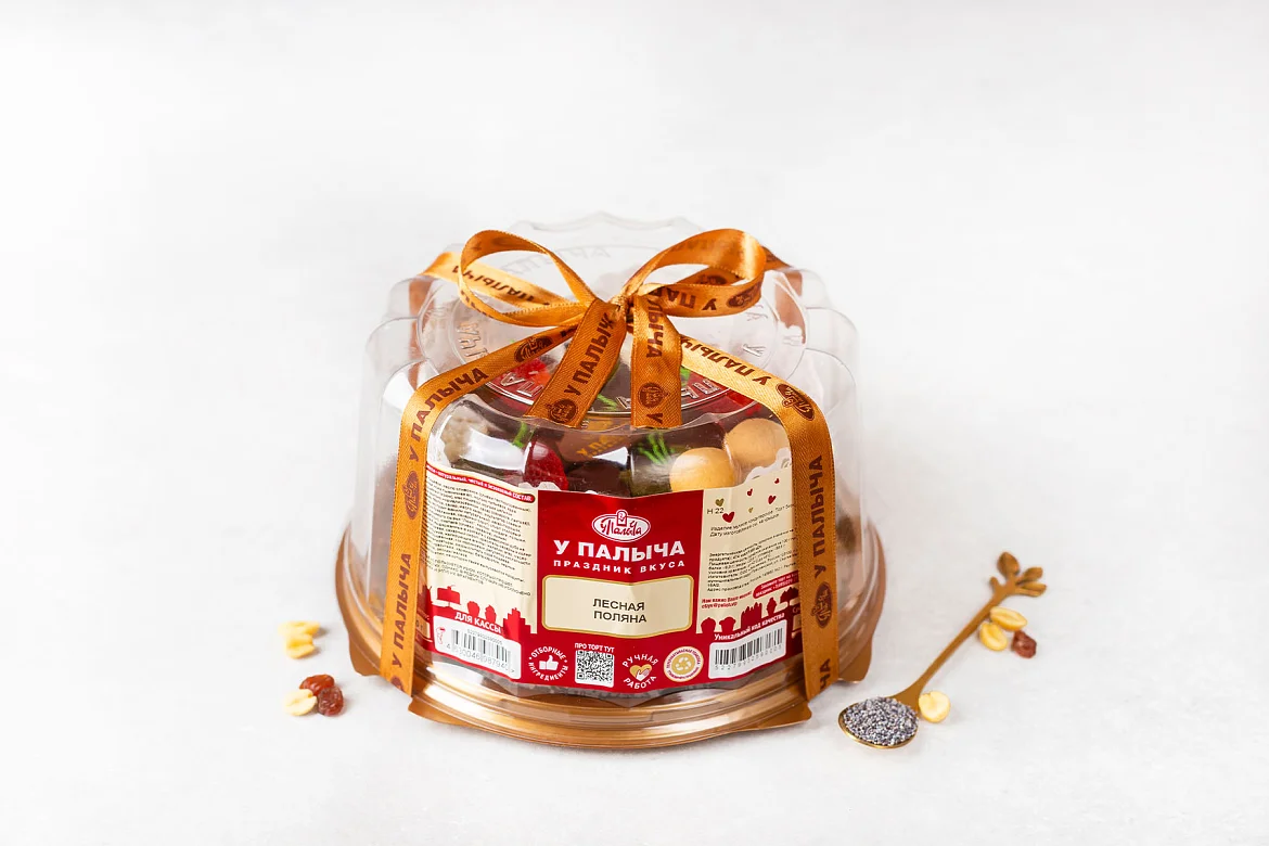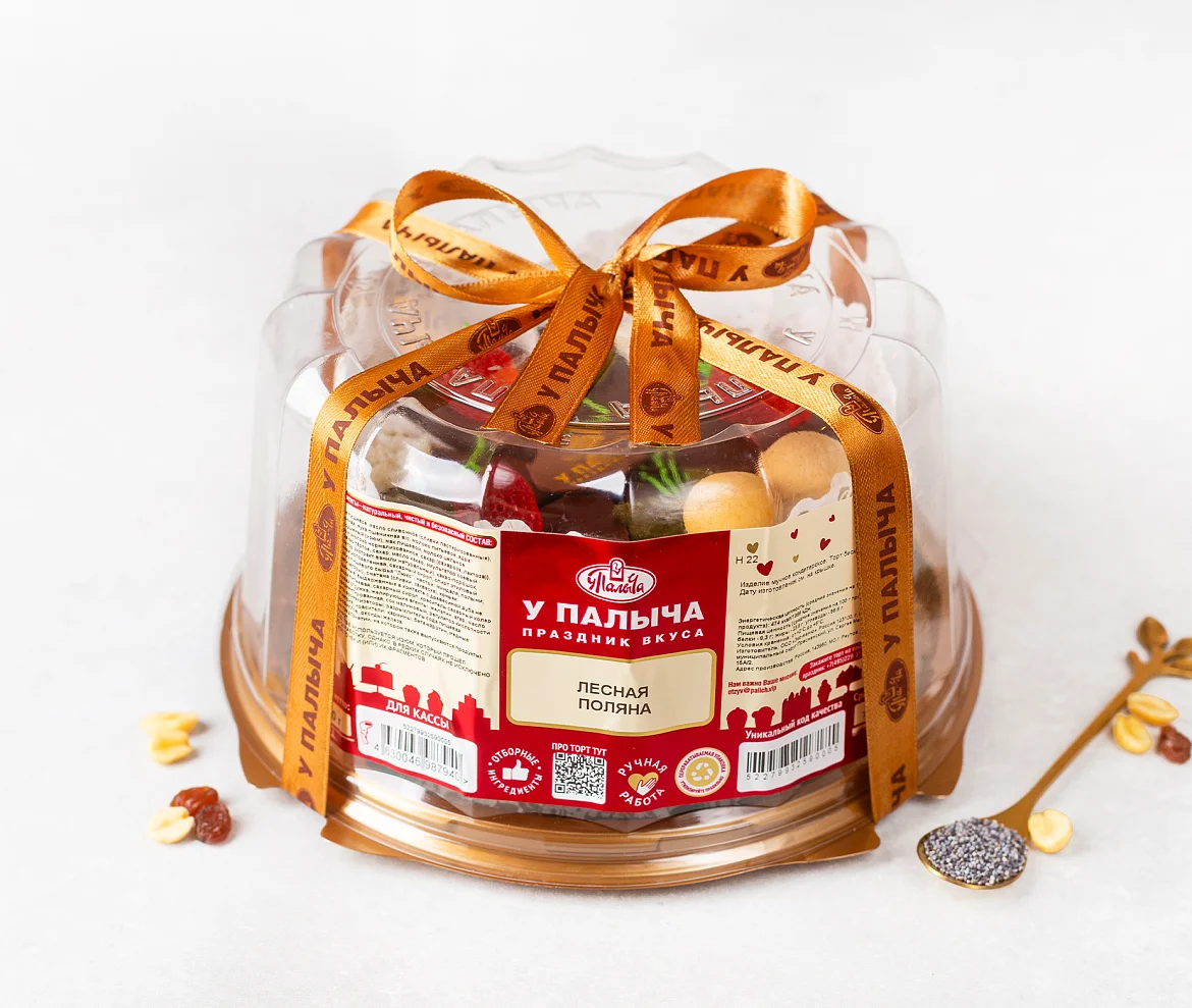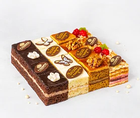 Сахар, яйцо куриное пищевое, масло сливочное (сливки пастеризованные), патока, вода очищенная, мука пшеничная в/с, молоко питьевое, ядра арахиса, виноград сушеный (изюм), мак пищевой, молоко цельное сгущенное с сахаром (молоко нормализованное, сахар (сахароза, лактоза)), шоколад темный (какао тёртое, сахар, масло какао, эмульгатор соевый лецитин, ароматизатор экстракт ванили натуральный), какао-порошок, ликёр (вода питьевая исправленная, сахарный сироп, спирт этиловый ректификованный из пищевого сырья «Люкс», настои: миндаля, полыни, пажитника; ароматизаторы), сметана (сливки, закваска), коньяк (дистилляты коньячные, выдержанные в контакте с древесиной дуба не менее трех лет, вода питьевая, сахарный сироп, краситель сахарный колер I простой), кокосовая стружка, желирующие агенты: желатин, агар; масло какао, глюкоза ферментированная, сок малиновый, регулятор кислотности лимонная кислота, ароматизаторы, разрыхлитель сода пищевая (гидрокарбонат натрия), красители: кармины, бета-каротин, медные комплексы хлорофиллов, оксиды железа.