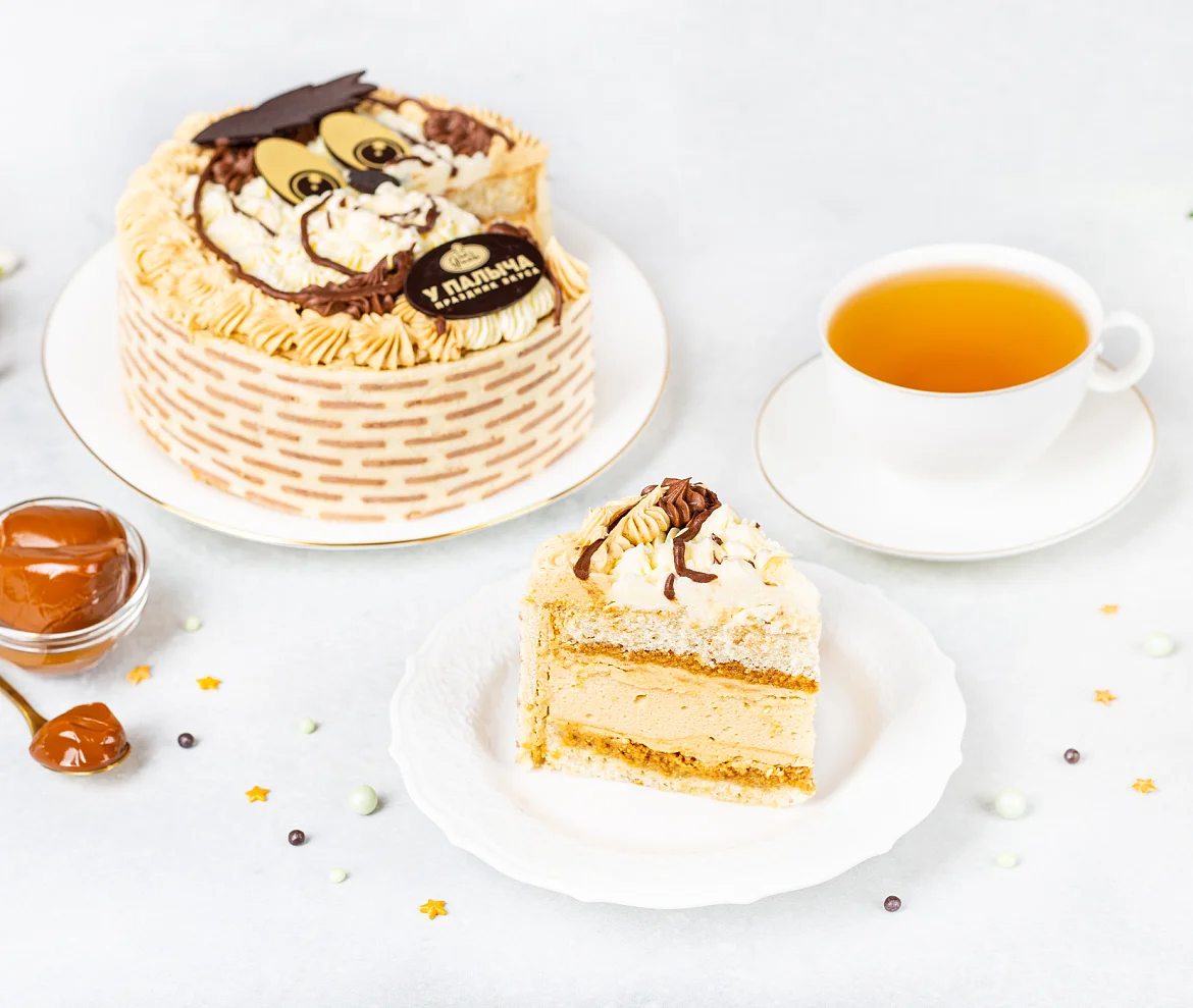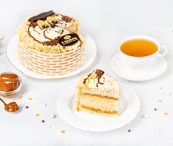 Новое веселое и полезное лакомство для маленьких сладкоежек. Большая прослойка из воздушного сливочного суфле с варёным сгущённым молоком, два слоя нежного классического бисквита и вкуснейший крем из отборного сливочного масла с добавлением легкого заварного крема и вареного сгущенного молока.