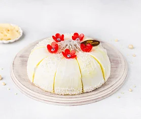 Сахар, яйцо куриное пищевое, мука пшеничная в/с, сыр творожный (11%) (творог, сливки молочные, масло сливочное, соль, стабилизатор гуаровая камедь, консервант сорбиновая кислота), крем на растительном масле (вода очищенная, масло кокосовое рафинированное дезодорированное, сахар, эмульгаторы: эфиры глицерина, молочной, диацетилвинной и жирных кислот, моно- и диглицериды жирных кислот, целлюлоза микрокристаллическая, соевый лецитин; агенты влагоудерживающие: сорбит, глицерин; молочный белок, стабилизатор карбоксиметилцеллюлоза натриевая соль, соль), вода очищенная, патока, шоколад темный (какао тёртое, сахар, масло какао, эмульгатор соевый лецитин, ароматизатор экстракт ванили натуральный), клубника с/м, шоколад белый карамелизированный (сахар, масло какао, молоко цельное сухое карамелизованное, сыворотка молочная сухая, эмульгатор соевый лецитин, ароматизатор экстракт ванили натуральный), какао-порошок, крахмал кукурузный, желирующие агенты: желатин, геллановая камедь; масло какао, рисовые шарики (крупа кукурузная, мука рисовая, сахар, вода, стабилизатор карбонат кальция, соль), соль, регулятор кислотности лимонная кислота, ароматизаторы, уксус столовый, красители: понсо 4R, кармины, бета-каротин, диоксид титана. Произведено на предприятии, на котором также выпускаются продукты, содержащие арахис, кунжут, орехи. Содержит краситель, который может оказывать отрицательное влияние на активность и внимание детей.