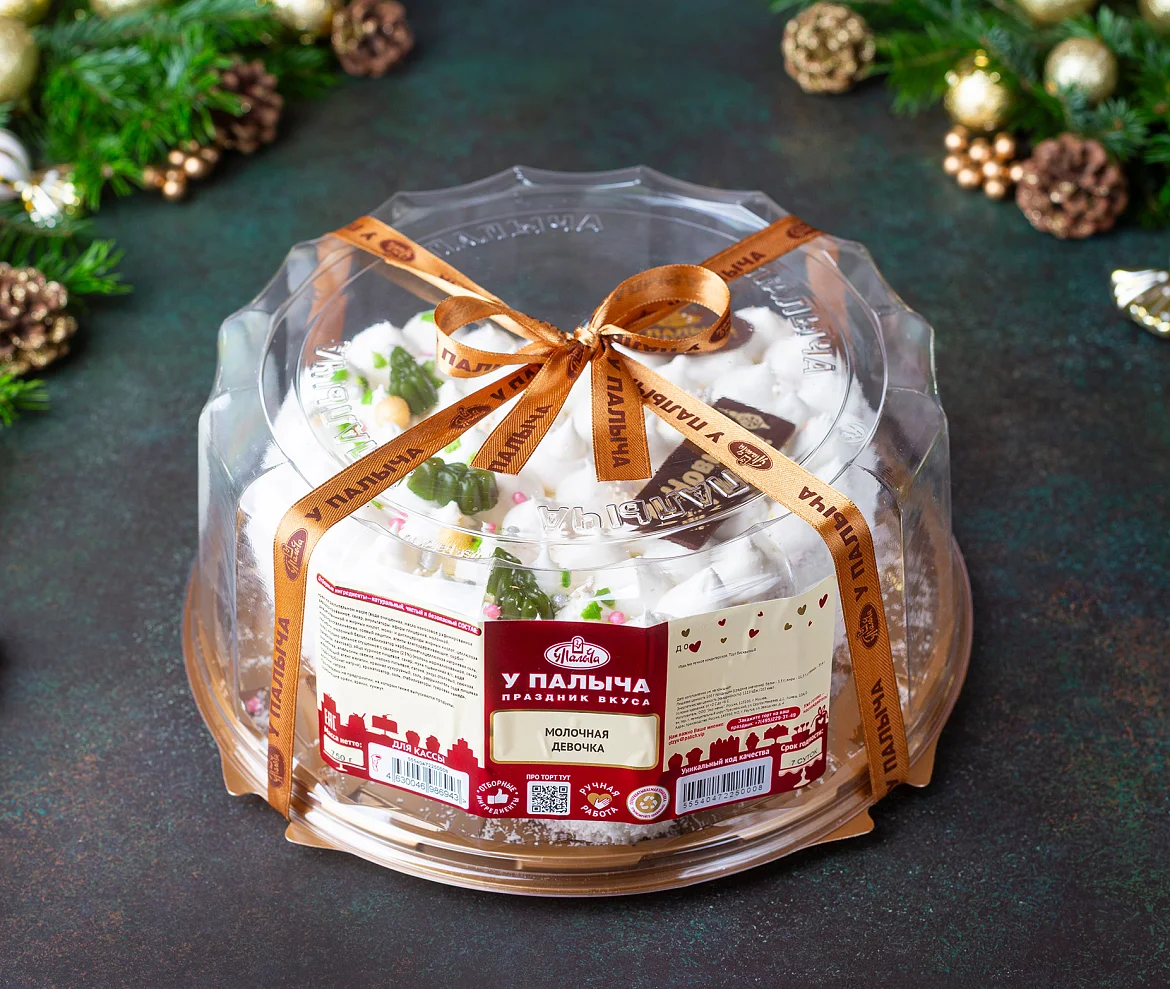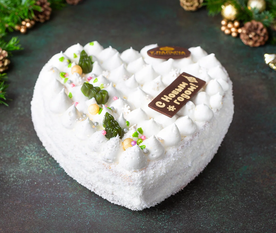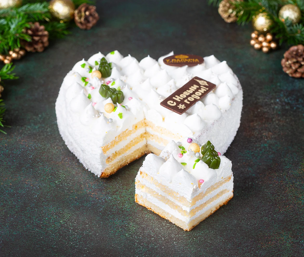 Поздравительная надпись на торте может отличаться, но обязательно будет праздничной. Пышный бисквит на сгущенном молоке без заменителей молочных жиров, пропитанный молочным сиропом с пониженным содержанием сахара, воздушный крем с настоящей сгущенкой, свежевыжатым апельсиновым соком и апельсиновой цедрой. Специально к празднику этот роскошный торт украшен зелеными ёлочками, сладкими жемчужинами и кокосовой стружкой. Сама нежность!