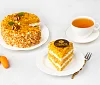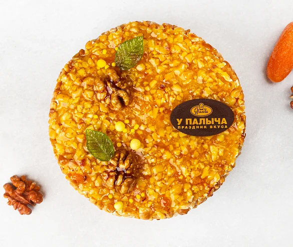 Торт состоит из трёх слоев нежного морковно-апельсинового бисквита, пропитанного ароматной абрикосовой начинкой. Прослойки украшены кремом на основе растительных сливок, дополненным абрикосовым джемом. Торт украшен с хрустящим арахисом и грецкими орехами. Это вкусное и полезное угощение порадует вас и ваших близких.