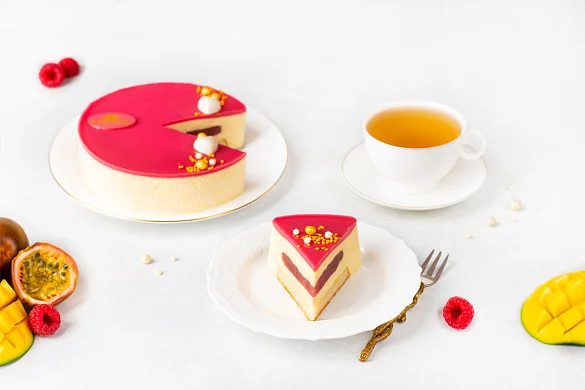 Превосходный торт с пониженным содержанием калорий, лёгкий и вкусный, с воздушным муссом на сгущенке с тропическими манго и маракуйей, щедрым слоем ароматного конфитюра из лесной малины и нежным натуральным бисквитом в виде тончайшего коржа без эмульгаторов. Простой, понятный и чистый состав без консервантов, в котором нашли своё изумительное сочетание густые молочные сливки из коровьего молока, отборные ягоды малины и самые спелые экзотические фрукты. Сверху торт украшен композицией из хрустящего воздушного риса в шоколаде. Идеально для ценителей осознанного и правильного питания.