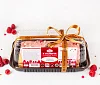Сахар, крем на растительном масле (вода очищенная, масло кокосовое рафинированное дезодорированное, сахар, эмульгаторы: эфиры глицерина, молочной, диацетилвинной и жирных кислот, моно- и диглицериды жирных кислот, целлюлоза микрокристаллическая, соевый лецитин; агенты влагоудерживающие: сорбит, глицерин; молочный белок, стабилизатор карбоксиметилцеллюлоза натриевая соль, соль), мука пшеничная в/с, молоко цельное сгущенное с сахаром (молоко нормализованное, сахар (сахароза, лактоза)), вода очищенная, малина с/м, яйцо куриное пищевое, шоколад белый (сахар, масло какао, молоко цельное сухое, сыворотка молочная сухая, эмульгатор соевый лецитин, ароматизатор экстракт ванили натуральный), апельсины свежие, уксус столовый, глюкоза, желирующий агент желатин, соль, масло подсолнечное рафинированное дезодорированное, шоколад темный (какао тёртое, сахар, масло какао, эмульгатор соевый лецитин, ароматизатор экстракт ванили натуральный), глюкоза ферментированная, рисовые шарики (крупа кукурузная, мука рисовая, сахар, вода, стабилизатор карбонат кальция, соль), посыпка сахарная декоративная (мука рисовая, сахар, вода, масло какао, носитель гуммиарабик, эмульгатор соевый лецитин), крахмал кукурузный, куркума молотая, ароматизаторы, регулятор кислотности лимонная кислота красители: кармины, бета-каротин, оксиды железа, глазирователь шеллак. Произведено на предприятии, на котором также выпускаются продукты, содержащие арахис, кунжут, орехи.