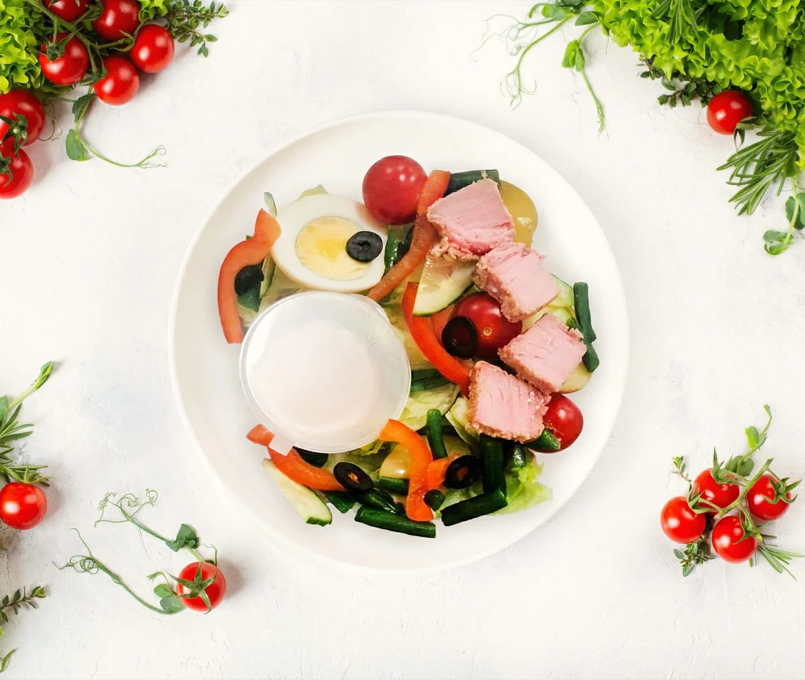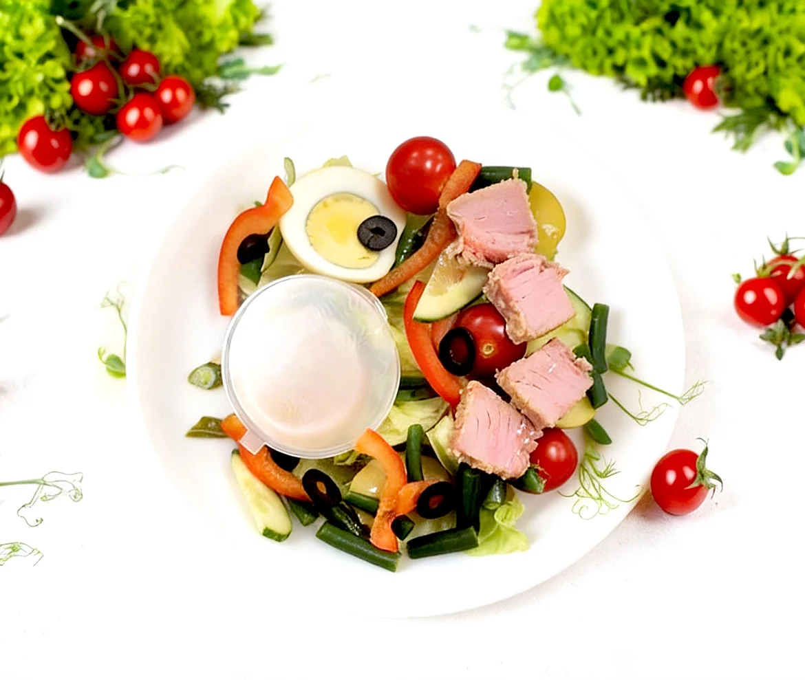Салат, рожденный в Ницце и вошедший в список классических блюд мировой кухни. Вкусный тунец, вареное яйцо, рассыпчатый картофель, маслины, много свежих овощей и особый соус с нотами морского бриза – легкий, сбалансированный и питательный салат с Лазурного берега Франции. Один из ярчайших рецептов средиземноморской кухни.