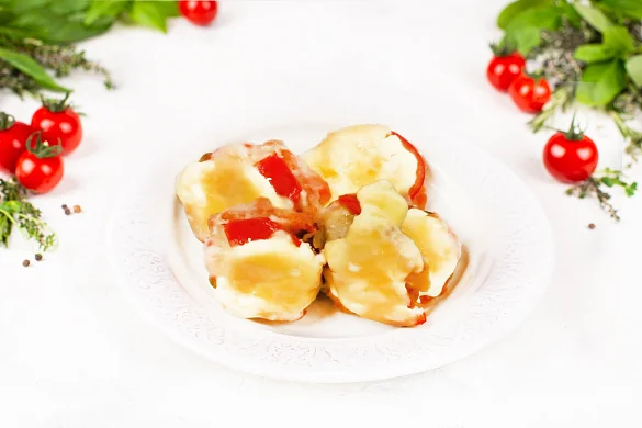 Потрясающе вкусное блюдо, не требующее гарнира. Отбивные из свинины с майонезом, солёными огурцами, помидорами, запекаются под "шубой" из овощей и сыра.