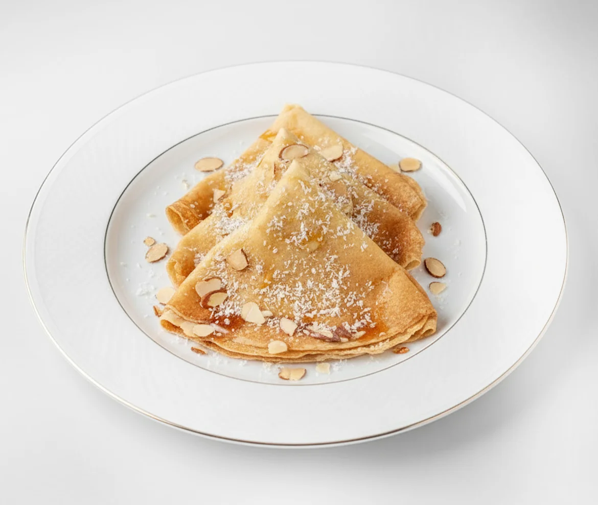 Тонкие блинчики для гурманов, приготовленные по классическому рецепту без дрожжей и добавок. В составе: свежие деревенские яйца, сливочное масло, молоко, пшеничная мука высшего сорта. Начинка из творожно-кокосового крем-сыра. Блинчики политы кленовым сиропом и украшены миндалем с кокосовой стружкой. «У Палыча» — ручная работа мастеров блинного дела!