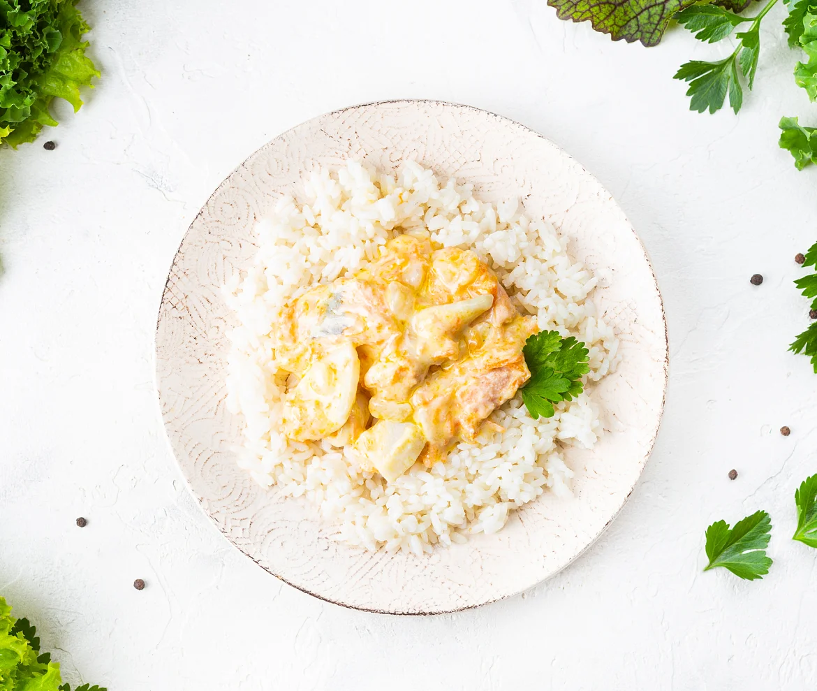 Идеальный обед или ужин в виде полезнейшего блюда из отборной горбуши, командорского кальмара, настоящих сливок, соуса Бешамель и рассыпчатого риса. Вкус и гармония с заботой о здоровье и фигуре.