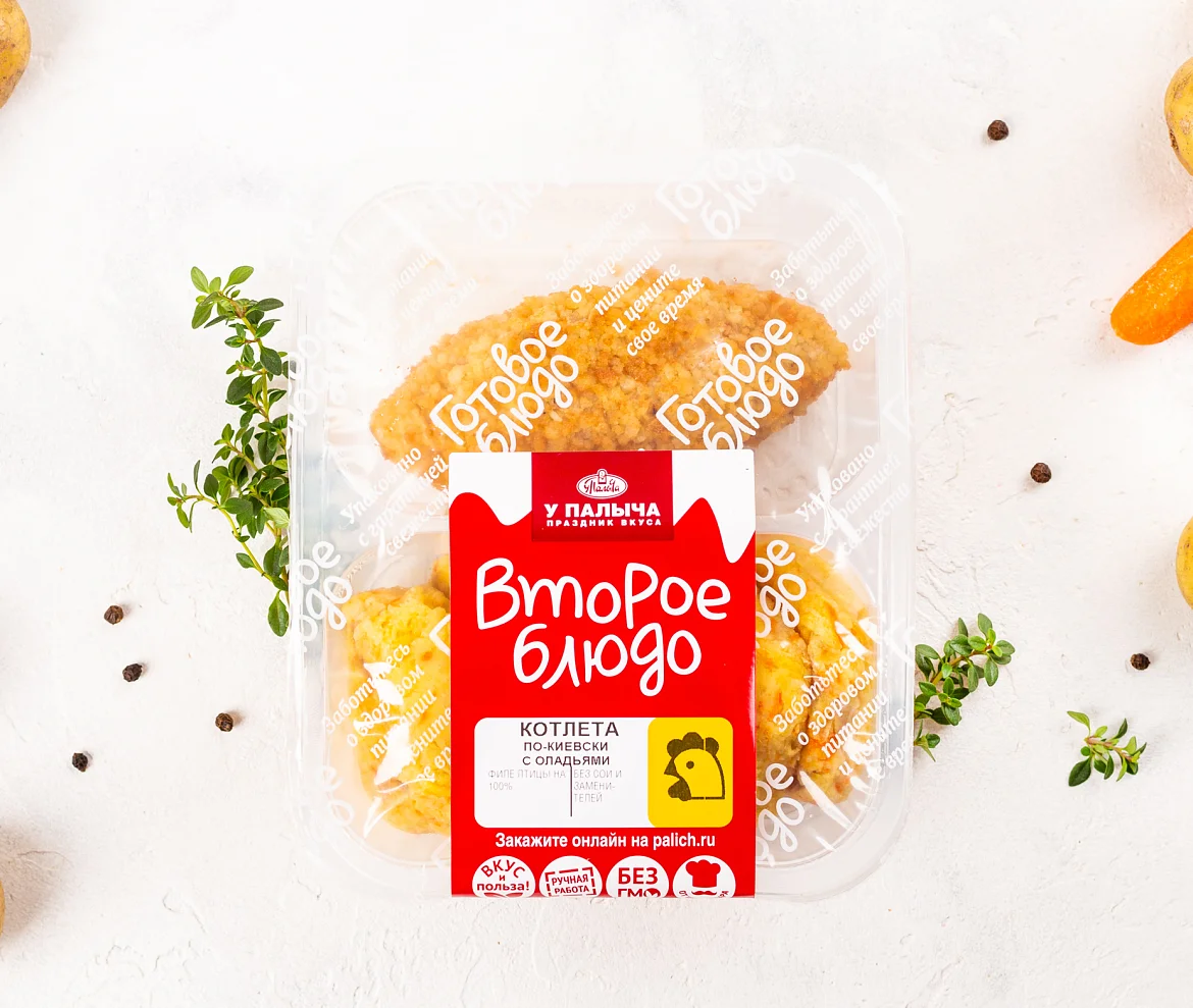 Теперь хит от Палыча с вкуснейшим гарниром! Кулинарное творение, подвластное только истинным мастерам: кусочек натурального сливочного масла внутри котлеты из цельного филе курицы и идеальная хрустящая панировка. Только опытнейшие повара У Палыча готовят это блюдо по всем канонам и с гарантией отличного вкуса. Легкие картофельные оладьи идеально дополняют котлету по-киевски и делают блюдо гармоничным и сбалансированным.