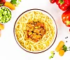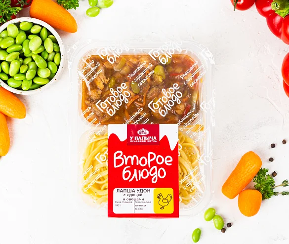 Вода очищенная, филе грудки и окорочков куриное б/к, лапша пшеничная Удон (мука из твердых сортов пшеницы в/с, мука пшеничная хлебопекарная в/с, яйцо куриное пищевое, соль), бананы свежие, груша свежая, соус Терияки (соус соевый (вода питьевая, соевые бобы, соль, пшеничная мука, сахар, краситель сахарный колер I простой), вода очищенная, сахар, уксус яблочный, крахмал картофельный, масло подсолнечное рафинированное дезодорированное, имбирь молотый), соус Барбекю (вода очищенная, сахар, томатная паста, уксус столовый, крахмал кукурузный, соль, имбирь молотый, приправа хмели-сунели (кориандр молотый, куркума, пажитник молотый, базилик, майоран, мята, петрушка, зелень укропа), перец красный чили молотый, ароматизатор), морковь столовая свежая, кетчуп (томатная паста, сахар, вода очищенная, уксус столовый, соль, крахмал кукурузный), сок апельсина, фасоль стручковая с/м, лук-порей свежий, перец сладкий свежий, масло подсолнечное рафинированное дезодорированное, соус соевый (вода питьевая, соевые бобы, соль, пшеничная мука, сахар, краситель сахарный колер I простой), масло кунжутное рафинированное, соус Уочестер (уксус солодовый (из ячменя), уксус, патока, сахар, соль, анчоусы, экстракт тамаринда, лук, чеснок, специи, ароматизаторы), мед, соль, перец черный молотый.