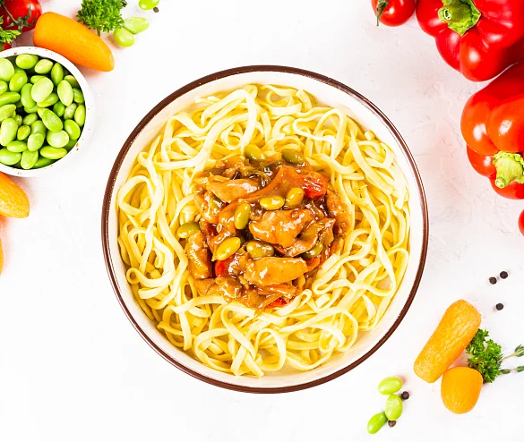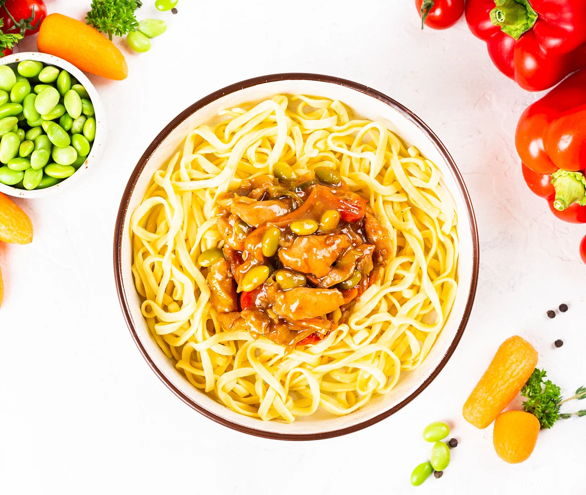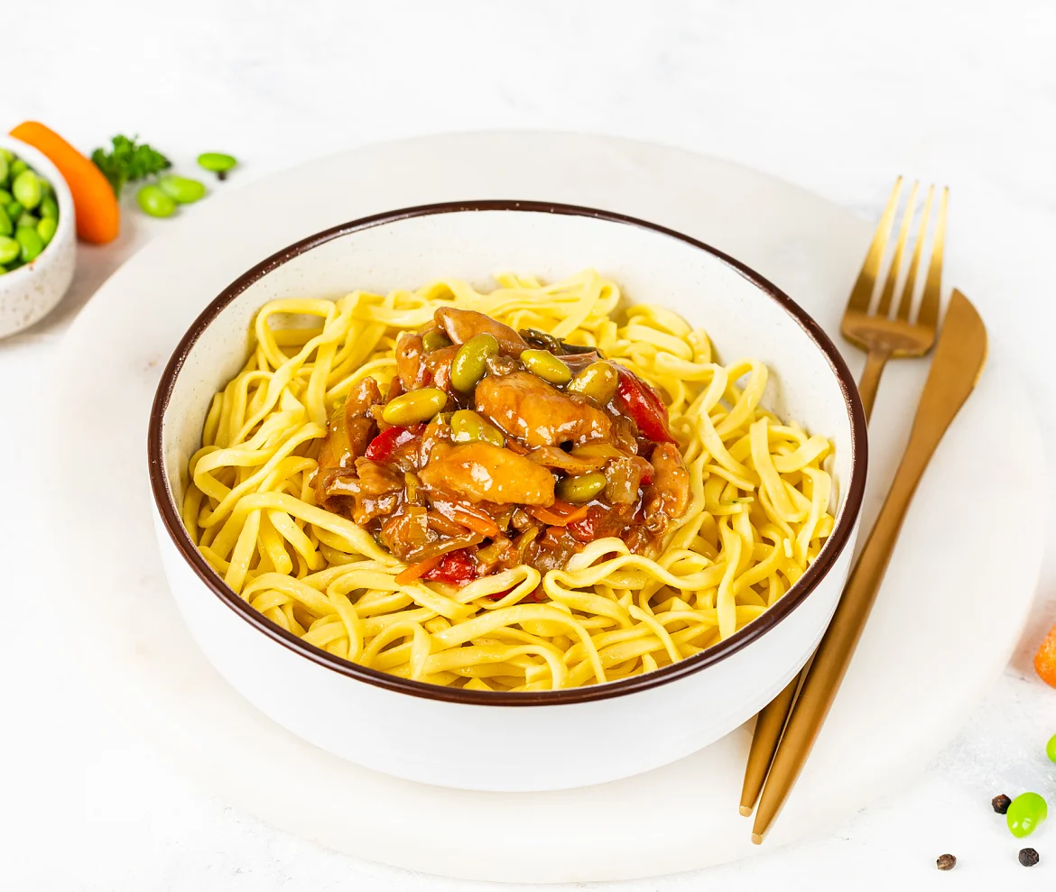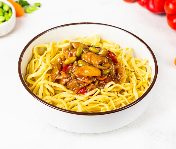 Классика азиатской кухни! Лапша удон с курицей , овощами, соусом Терияки и пряностями - очень вкусно и сытно.