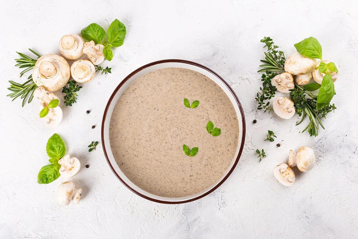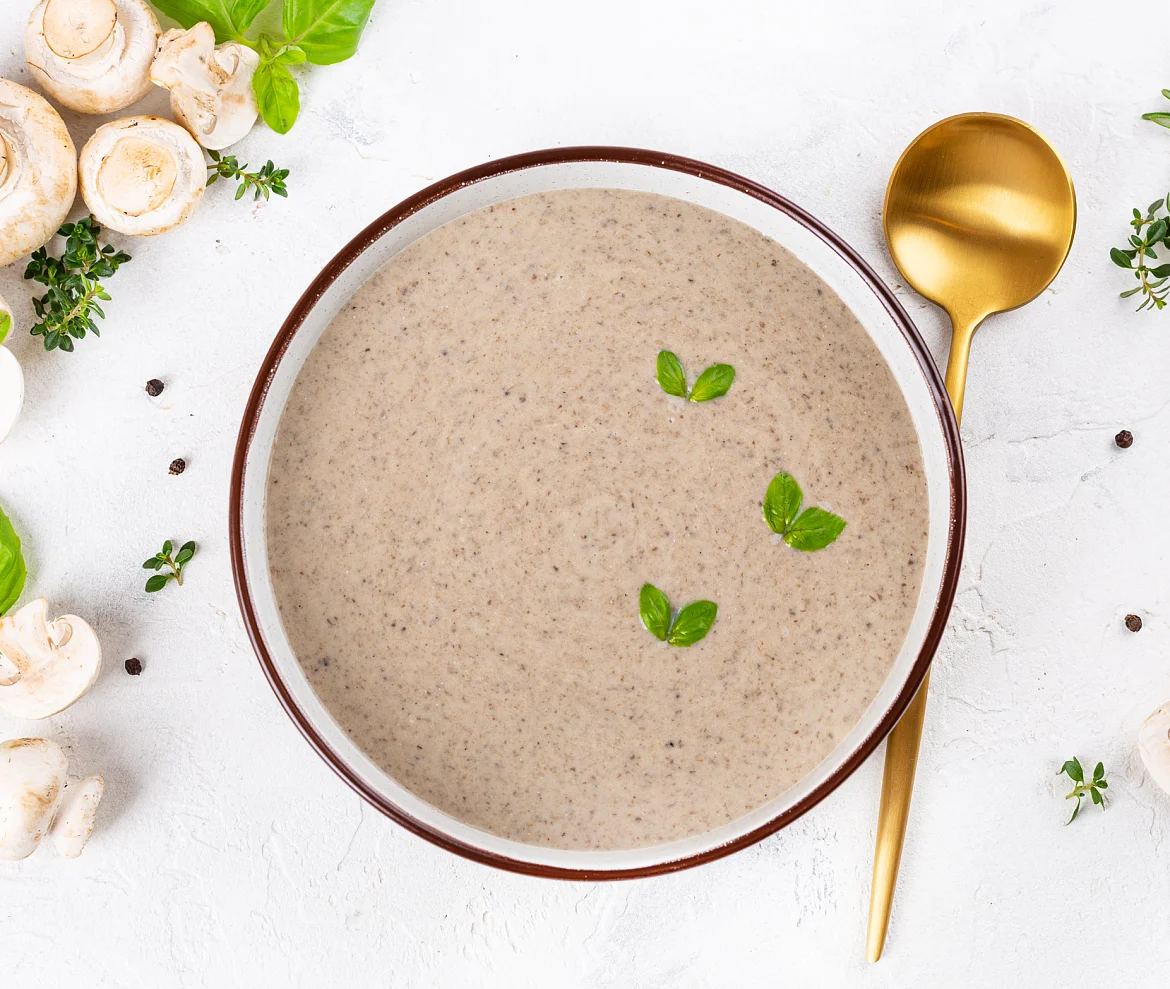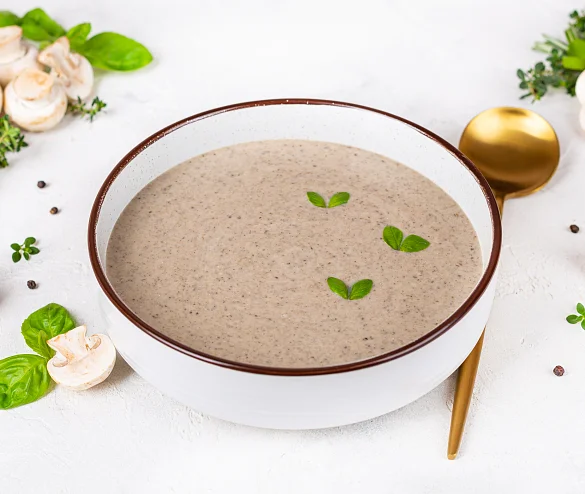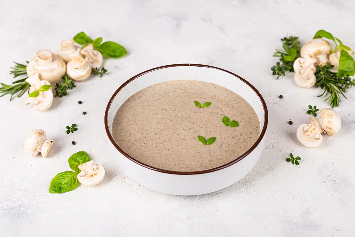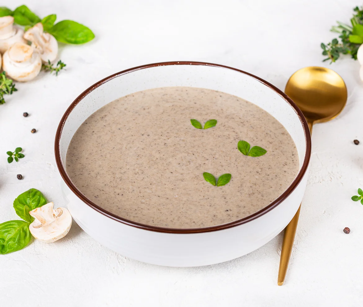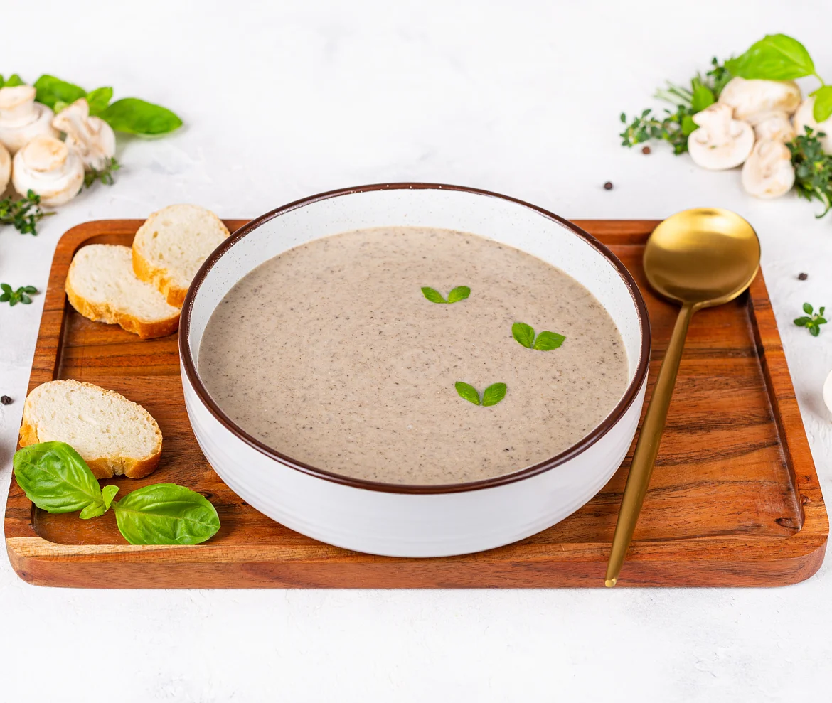 Густое и сытное блюдо. Классический суп-пюре со сливками с отборными грибочками.