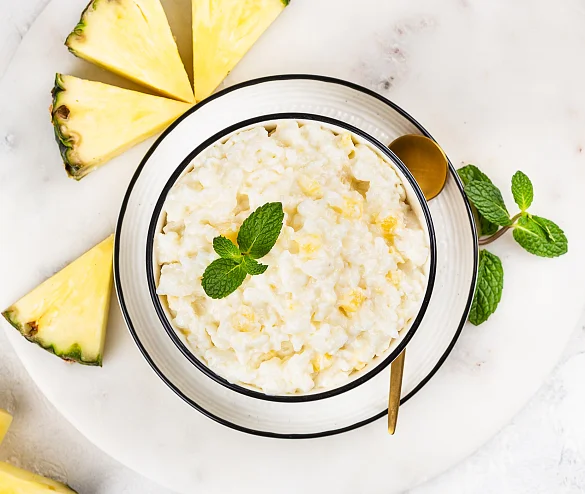 Уникальное сочетание восхитительного молочного вкуса классической рисовой каши с экзотической сладостью тропического ананаса по оригинальному рецепту нашего шеф-повара. Этот изысканный завтрак без глютена порадует любителей ярких солнечных фруктов, зарядит бодростью и энергией на день!