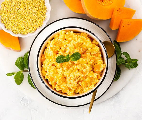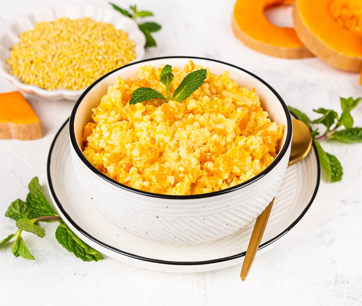 Вода очищенная, молоко питьевое, тыква свежая, крупа пшено, масло сливочное (сливки пастеризованные), сахар, соль, корица целая (палочка).