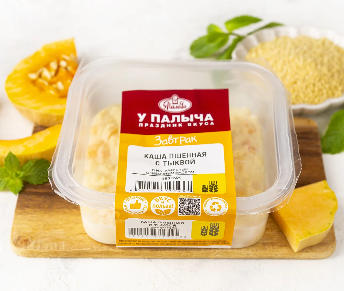 Солнечная каша из отборного пшена и спелой тыквы на натуральном молоке, приготовленная по уникальной технологии за счет специальной температуры томления и пастеризации, позволяющей сохранять исключительные вкусовые характеристики и полезные свойства в течение всего срока годности. Этот вегетарианский продукт подходит для здорового питания, тем более что в его составе вместо сахара - природный подсластитель стевия, в котором содержится всего 18 ккал в 100гр.