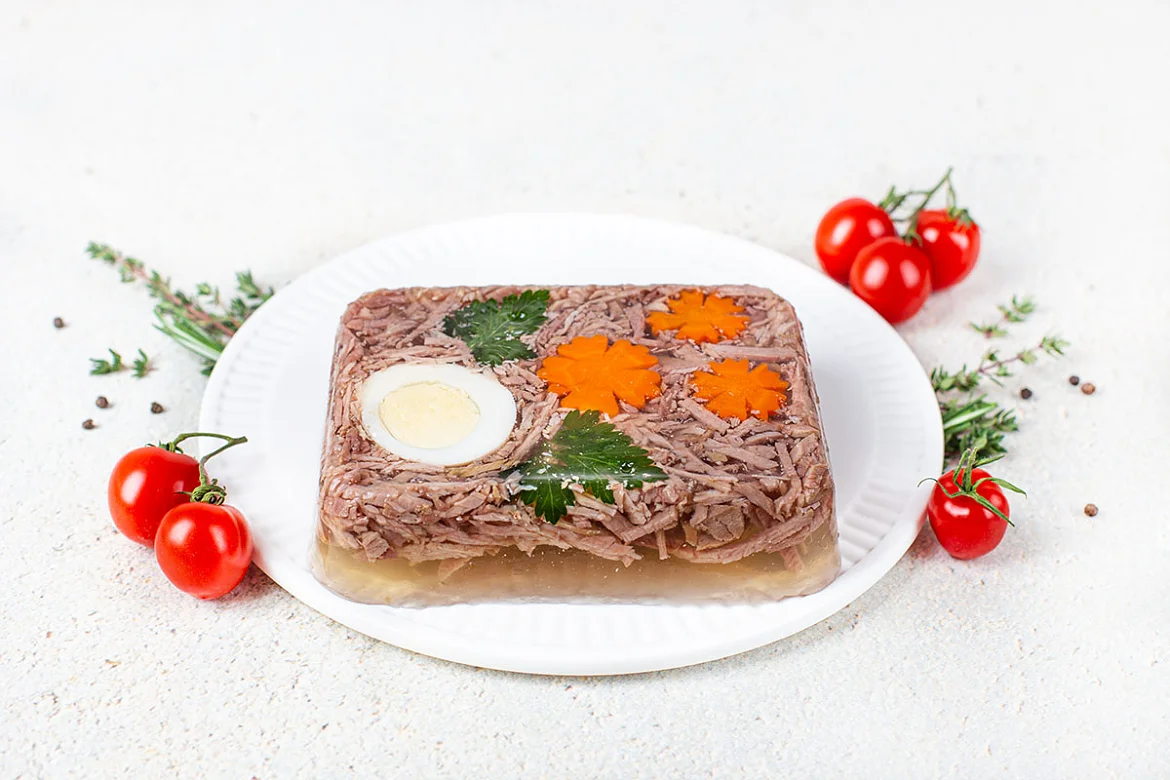 Настоящий домашний холодец не говяжьем бульоне с чесночком, овощами и ароматными специями. Только отборное мясо, свежие овощи и натуральные специи. Никаких заменителей, улучшителей и консервантов. Идеально для праздничного стола!