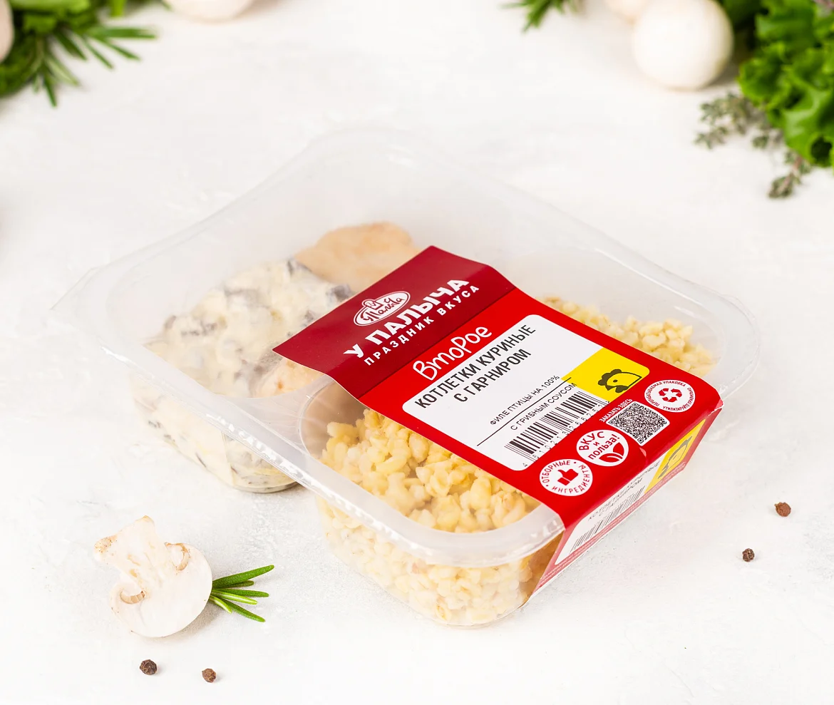 Котлетки куриные с гарниром и грибным соусом 300 г