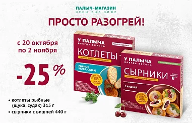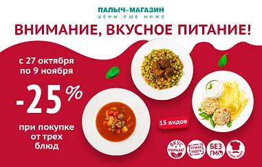 Выгода 25 % в Палыч-Магазин при покупке от трёх блюд!